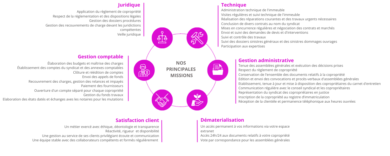 - un accompagnement professionnel et réactif : Des conseils précis pour prendre les bonnes décisions au cours de la vie de la copropriété en conservant une réactivité de nos équipes au quotodien.